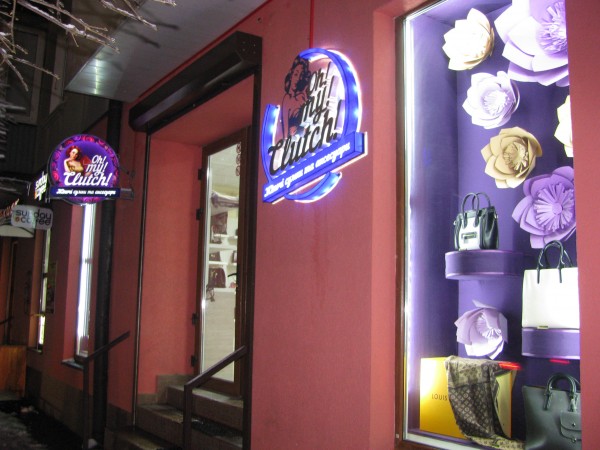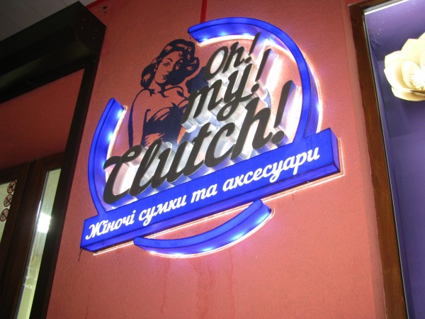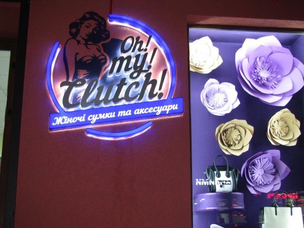 СВІТЛОВА ВИВІСКА ТА КРОНШТЕЙН ДЛЯ МАГАЗИНУ СУМОК «OH MY CLUTCH».
