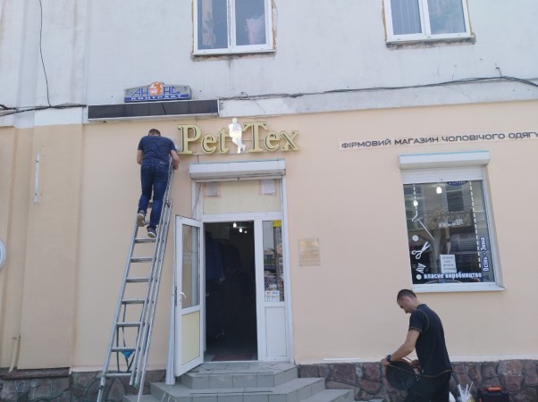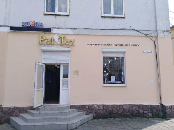 Елегантність та витримка стилю. Простота й точність деталей. Ця рекламна конструкція - повне відображення особливості моделей одягу компанії "Петтекс". Об'ємні "золоті" букви "PetTex" з алюмінієвим бортом - сучасні стандарти рекламних вивісок. "Фірмовий магазин чоловічого одягу" - акрилові елементи класичного чорного кольору. Вивіска виконана з повним дотриманням офіційних вимог щодо зовнішньої реклами міста.