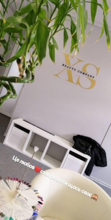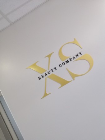 Іміджева акрилова аплікація XS BEAUTY COMPANY для брендування приміщення. Використано «золоті» та чорні акрилові елементи.